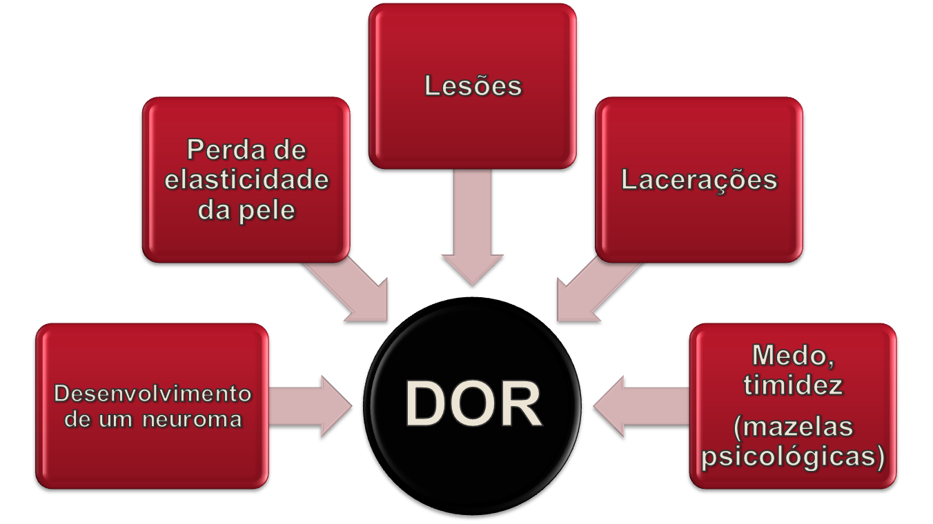 - Lesões, lacerações, perda de elasticidade da pele, ou o desenvolvimento de um neuroma (um tumor ou massa crescente de um nervo) podem levar a relações sexuais dolorosas.